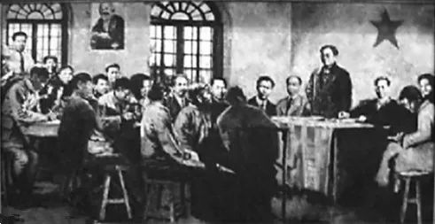 ▲中国社会主义青年团第一次全国代表大会会场(油画)